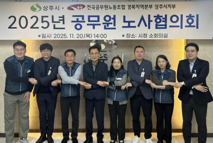 [뉴스노크=김인호 기자] 상주시는 11월 20일 시청 소회의실에서 공무원 노동조합과 직원 후생복지 증진과 근무 환경개선을 위한 ‘2025년도 공무원 노사협의회’를 개최했다.