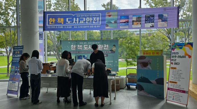 [뉴스노크=김인호 기자] 전남대학교 도서관은 지난 9월 23일부터 9월 26일까지 나흘간 도서관 정보마루 동편 1층에서 열린 ‘2025 한 책 도서교환전’이 성황리에 마무리됐다고 밝혔다.