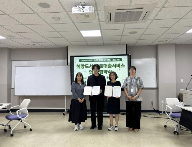 [뉴스노크=김인호 기자] 아산시는 13일 둔포면 소재 ‘어제의 서점’과 ‘희망도서 바로대출’ 서비스 운영을 위한 업무 협약을 체결했다고 밝혔다.