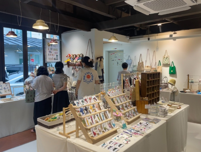 가방, 목걸이, 인형, 키링, 마그넷 등 아기자기한 소품은 물론 자수를 놓은 가림막, 뜨개 모자, 조명등, 테라리움 등 생활 속 공예품까지 종류도 다양하다.