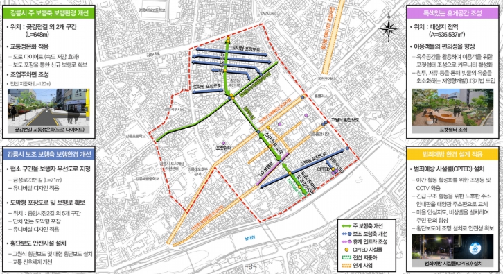 강릉시는 이번 사업을 통해 사고 위험이 높은 구간을 집중 개선해 보행자 사고를 근본적으로 줄이는 것을 목표로, 도심 상권과 주요 관광지를 연결하는 보행 중심 도시환경을 조성할 계획이다.