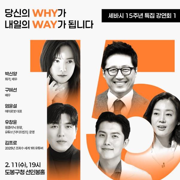 [뉴스노크=김인호 기자] 서울 도봉구가 2월 11일 오후 7시 도봉구청 2층 선인봉홀에서 세바시(세상을 바꾸는 시간 15분) 15주년 특집 강연회가 열린다고 밝혔다.