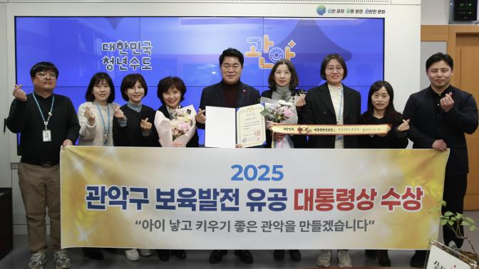 | ▲ 2025년 보육발전 유공 대통령상을 수상한 관악구(가운데 박준희 관악구청장) |