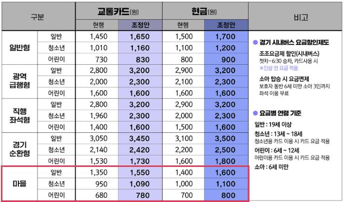경기도 시내‧광역 버스, 성남시 마을버스 요금 인상