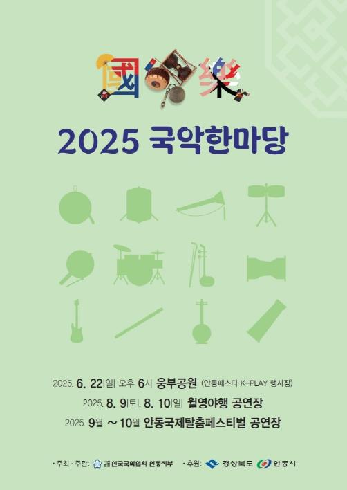 [뉴스노크=김인호 기자] (사)한국국악협회안동지부가 주관하는 ‘2025 국악한마당’ 공연이, 여름 대표 야간문화행사인 월영야행 기간 중 8월 9일, 10일 양일간 오후 6시 개목나루 공연장에서 펼쳐진다.