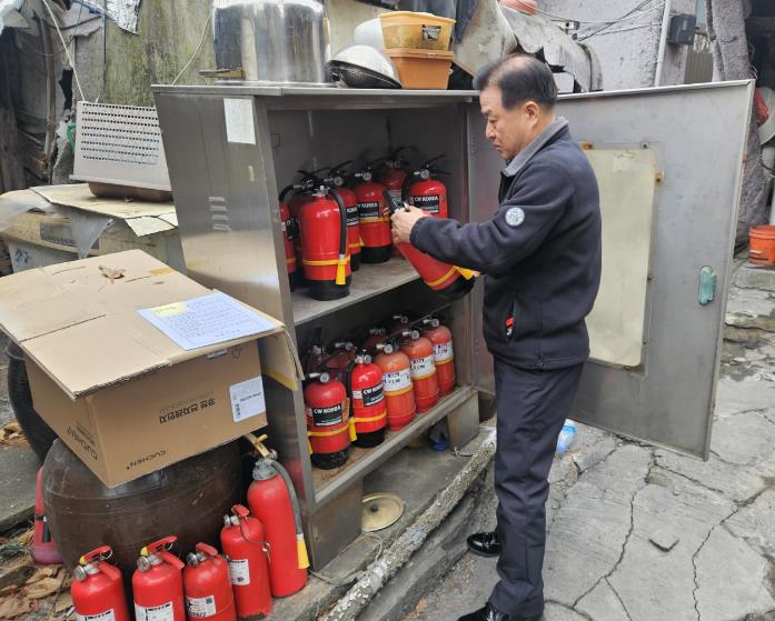 | ▲ 설 연휴 전 구룡마을에서 소화기 점검. |