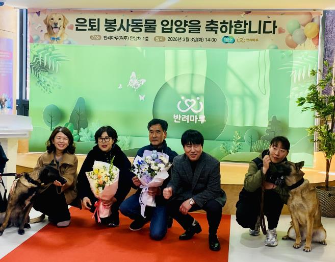축하식에는 2월 26일 반려마루 여주로 다시 새롭게 데려온 은퇴군견 2마리도 동반 참석했다. 모두 정찰견으로 활동하다 은퇴한 훈련견으로 사전에 사람과의 친화도, 반려견으로서의 품성을 심사해 선발된 민간분양 대상견이다.