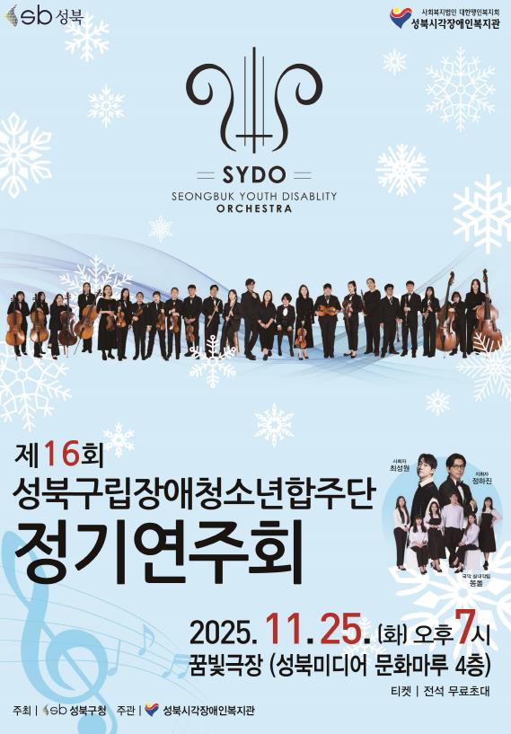 [뉴스노크=김인호 기자] 서울 성북구는 오는 11월 25일(화) 오후 7시, 꿈빛극장에서 ‘제16회 성북구립장애청소년합주단 정기연주회’를 개최한다. 이번 연주회는 청소년들이 음악을 매개로 서로 소통하고, 숨겨왔던 재능과 열정을 마음껏 펼칠 수 있도록 마련된 자리다.