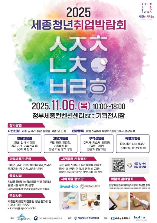 시 관계자는 “박람회가 청년에게는 새로운 기회의 장, 기업에게는 함께 성장할 인재를 만나는 자리가 되길 바란다”며 “세종의 미래를 이끌어갈 청년들의 많은 관심과 참여를 부탁드린다”고 말했다.