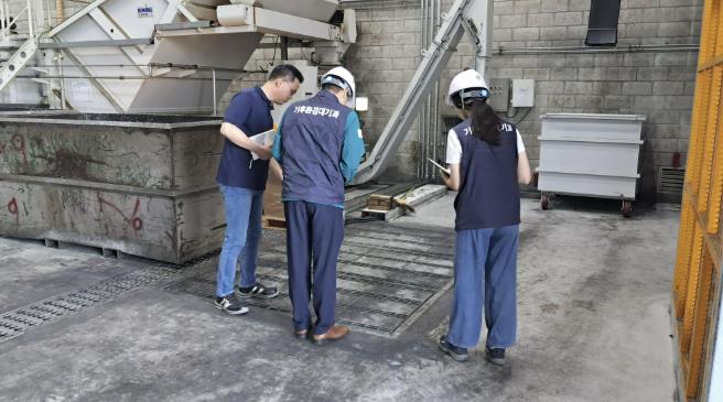 ▲ 서산시 관계자가 환경오염 물질 배출업체를 점검하는 모습 |