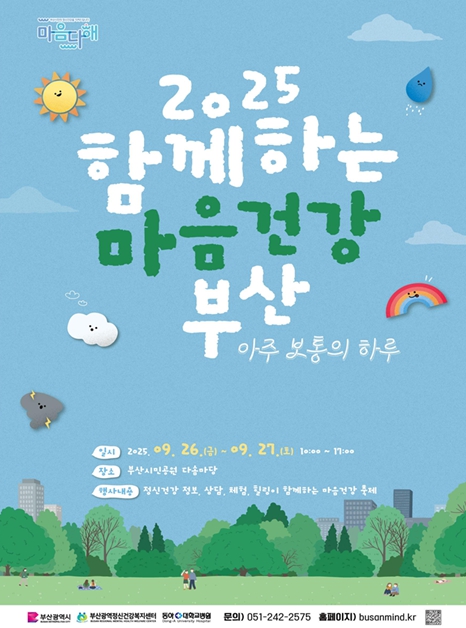 [뉴스노크=김인호 기자] 부산시는 오늘(26일)부터 27일까지 부산시민공원 다솜마당에서 '2025 함께하는 마음건강 부산'을 개최한다고 밝혔다.