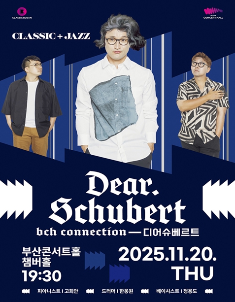 [뉴스노크=김인호 기자] 부산시 클래식부산은 오는 11월 20일 저녁 7시 30분 챔버홀에서 ▲피아니스트 고희안 ▲드럼 한웅원 ▲베이스 정용도와 클래식부산 오케스트라 수석들이 주축이 된 '부산콘서트홀 커넥션-디어 슈베르트'의 공연을 개최한다고 밝혔다.