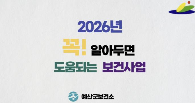 [뉴스노크=김인호 기자] 예산군보건소는 2026년 새해를 맞아 군민에게 필요한 보건사업 정보를 알기 쉽게 전달하기 위해 보건사업 홍보영상을 제작했다고 밝혔다.