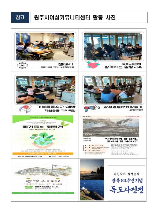 ▲ 원주시여성커뮤니티센터, 9·10월 다채로운 교육 프로그램 운영 |