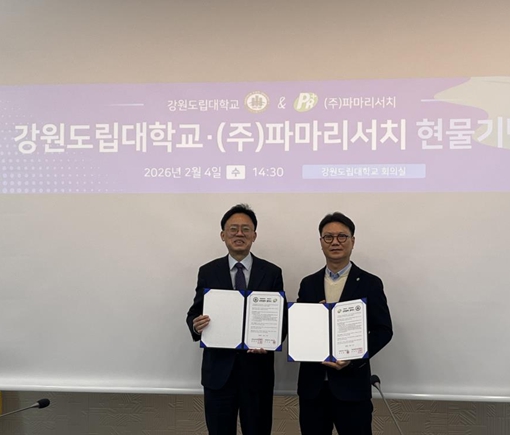 강원도립대학교는 2월 4일 대학 본부에서 파마리서치와 ‘산학협력 업무협약 및 현물 기탁식’을 개최했다고 밝혔다.