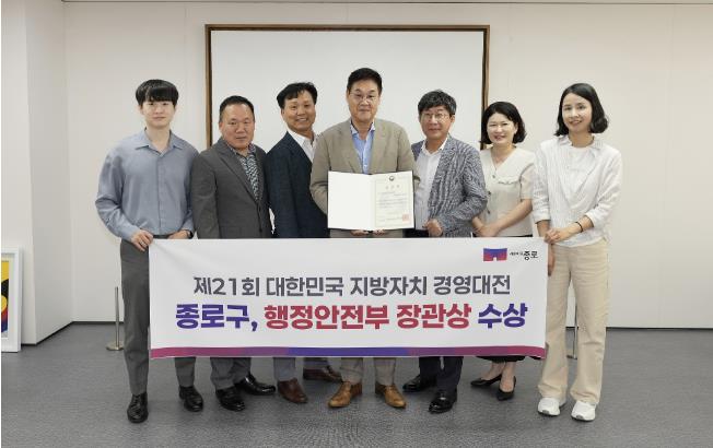 | ▲ 지방자치 경영대전 수상 기념촬영(가운데 정문헌 종로구청장) |