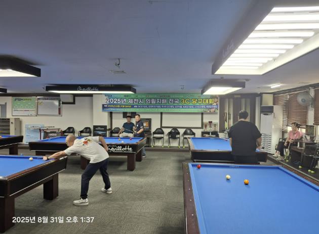 [뉴스노크=김인호 기자] 2025 제천 의림지배 전국국제식 3쿠션 당구대회가 지난 8월 31일 제천시 관내 7개 당구장에서 성황리에 열렸다. 제천시당구연맹이 주최·주관하고, 제천시체육회가 후원한 이번 대회에는 전국에서 256명의 선수가 참가해 기량을 겨뤘다.