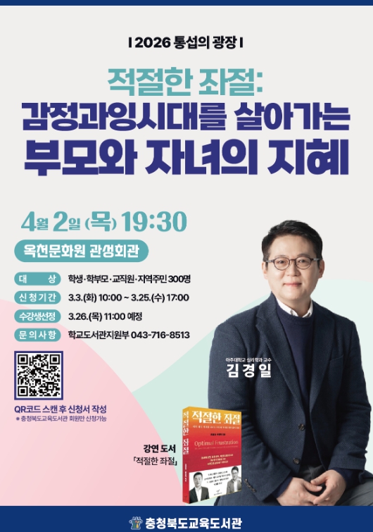 노재경 교육도서관장은 “이번 강연이 좌절과 실패를 새로운 시각으로 바라보고 스스로를 이해하는 힘을 기르는 계기가 되길 바란다.”라며 “앞으로도 다양한 분야의 전문가들과 함께 삶의 지혜를 나누는 인문 강연을 지속적으로 운영해 나가겠다.”라고 말했다.