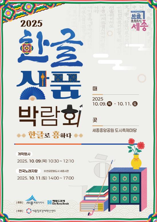 세종특별자치시는 오는 9일부터 11일까지 세종중앙공원 도시축제마당에서 제1회 한글 상품 박람회 ‘한글로 흥하다’를 개최한다.