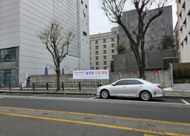 공영주차장 무료 개방은 2월 14일부터 18일까지 5일간 실시되며, 노외주차장 72개소, 노상주차장 16개소, 부설주차장 20개소 등 관내 모든 공영주차장과 시·구청 부설주차장이 대상이다.