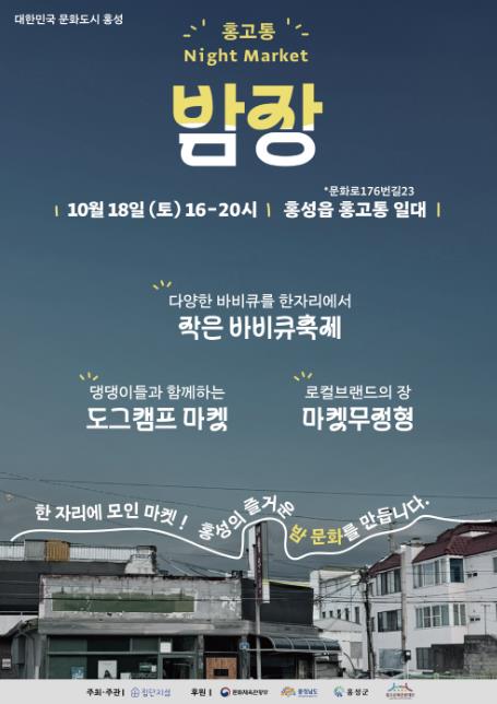 한편 이번 밤장은 대한민국 문화도시 홍성 조성사업 ‘홍자람’의 특화프로그램이자 홍주로컬콘텐츠 조성을 위해 마련된 행사로서, 청년창업가를 지원·육성하는 ‘집단지성’이 주최·주관하고 문화체육관광부, 충청남도, 홍성군, 홍주문화관광재단이 후원한다.