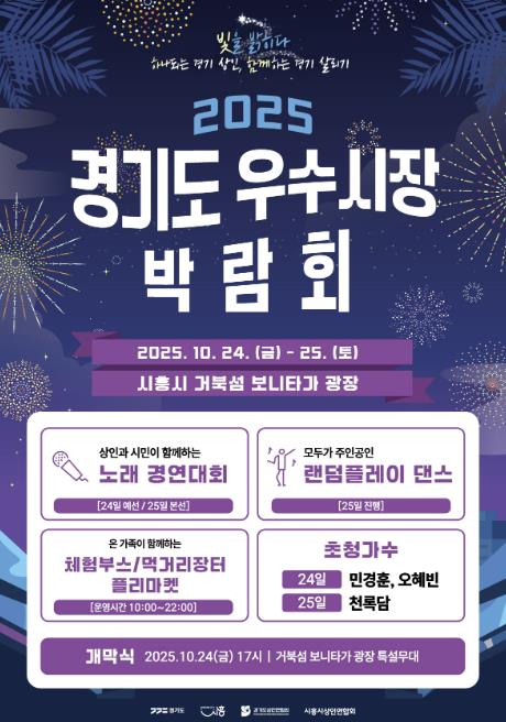 [뉴스노크=김인호 기자] 시흥시는 오는 10월 24일부터 25일까지 이틀간 거북섬 보니타가 광장에서 ‘2025년 제11회 경기도 우수시장 박람회’를 개최한다.