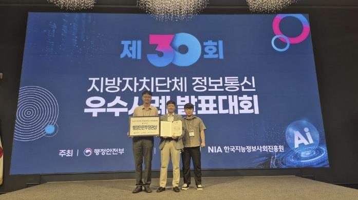 ▲ ‘제30회 지자체 정보통신 우수사례 발표대회’ 장관상 수상 기념촬영 |