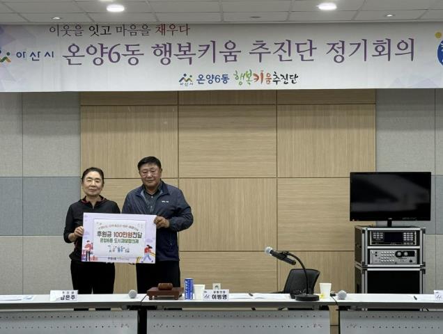 [뉴스노크=김인호 기자] 아산시 온양6동 행복키움추진단은 16일 온양6동 도시재생주민협의체로부터 프리마켓 ‘온주시장’을 통해 마련한 수익금 100만원을 후원금으로 전달받았다.