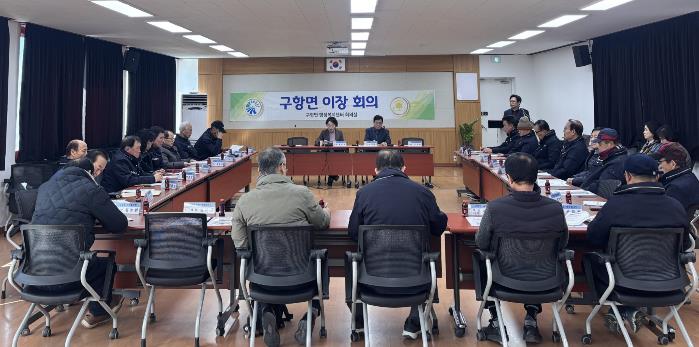 이날 회의에서는 배미자 구항면장을 비롯한 각 마을 이장 등이 참석하여 설 연휴 기간 안전하고 쾌적한 명절분위기 조성을 위한 주요 행정사항을 공유했다.