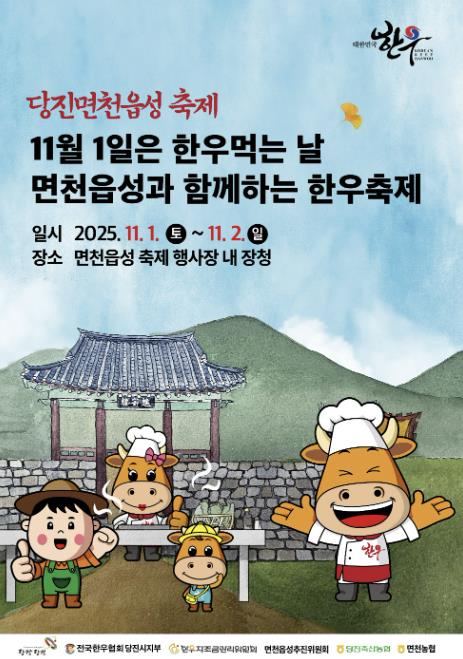 오는 10월 24일부터 26일까지는 삽교천 댄스·뮤직 페스티벌 현장에서‘2025 대한민국 한우먹는날 소프라이즈 한우 할인행사’를, 이어 11월 1일부터 2일까지는 면천읍성 축제 현장에서‘면천읍성과 함께하는 한우축제’를 개최한다.