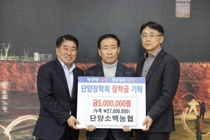 단양소백농협은 2019년부터 장학금 기탁을 시작해 올해까지 총 2,700만 원을 기부하며 지역 교육 발전과 인재 양성에 꾸준히 힘을 보태고 있다.