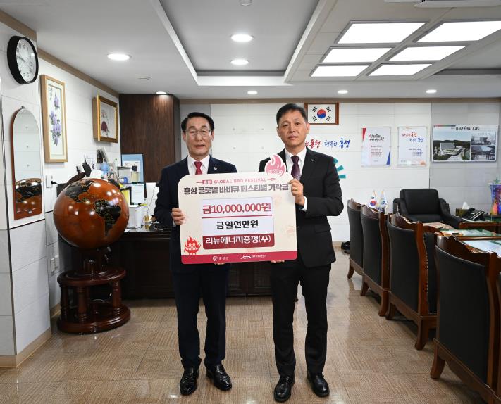 이용록 홍성군수는 “지역 환경 개선과 자원 순환에 앞장서 온 리뉴에너지충청㈜이 지역 발전과 축제 활성화를 위해 함께해 주셔서 감사드린다”며, “군민과 기업이 함께 만드는 ‘홍성글로벌바비큐페스티벌’을 지역경제에 활력을 불어넣는 성공적인 축제로 만들겠다”고 말했다.