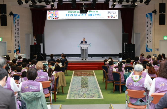 이번 해단식은 한 달간의 대장정을 성공적으로 마친 자원봉사단의 헌신과 노고를 기리기 위해 마련된 자리로, 관람객 100만 명 목표를 달성한 2025영동세계국악엑스포의 숨은 주역들을 격려하는 뜻깊은 시간이 됐다.