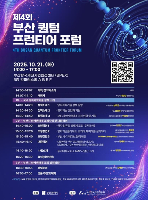 [뉴스노크=김인호 기자] 부산시는 오는 10월 21일 오후 2시 부산항국제전시컨벤션센터 컨퍼런스홀에서 '제4회 부산시 퀀텀 프런티어 포럼'을 개최한다고 밝혔다.