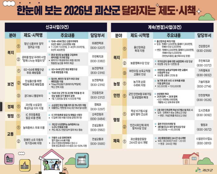 | ▲ 괴산군, 2026년 생활 달라지는 제도·시책 발표 |