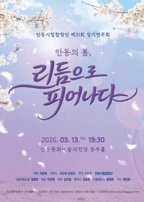 2008년 창단한 안동시립합창단은 다양한 기획공연과 정기연주회를 통해 시민과 가까이 호흡하며 수준 높은 합창 음악을 선보여 왔다. 이번 공연은 겨울의 끝자락에서 새롭게 피어나는 봄의 생명력과 희망의 에너지를 합창과 다양한 리듬의 음악으로 표현해 시민에게 따뜻한 감동을 전하고자 마련됐다.