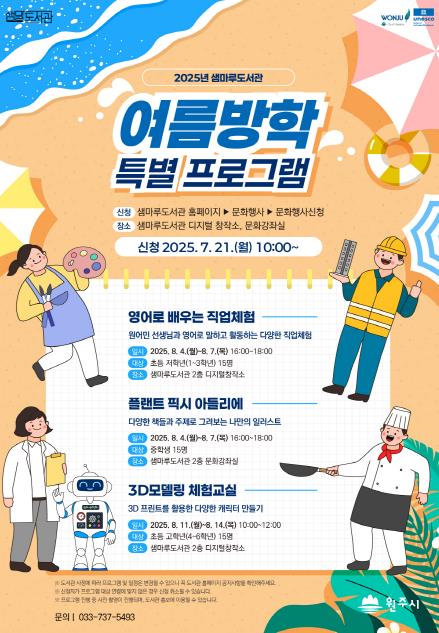 [뉴스노크=김인호 기자] 원주시 샘마루도서관은 8월 4일부터 14일까지 2025년 여름방학 특별 프로그램을 운영한다.