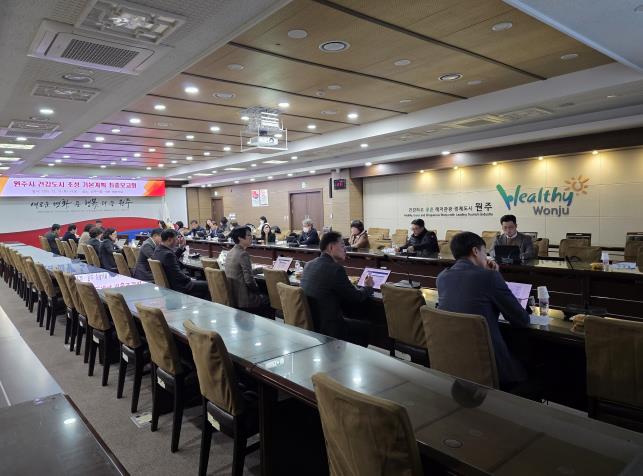 [뉴스노크=김인호 기자] 원주시 건강도시 조성 5개년 기본계획 수립 추진을 위한 최종보고회가 지난 11일 시청에서 열렸다. 보고회에는 김문기 부시장을 비롯한 관계 공무원 30여 명이 참석했다.