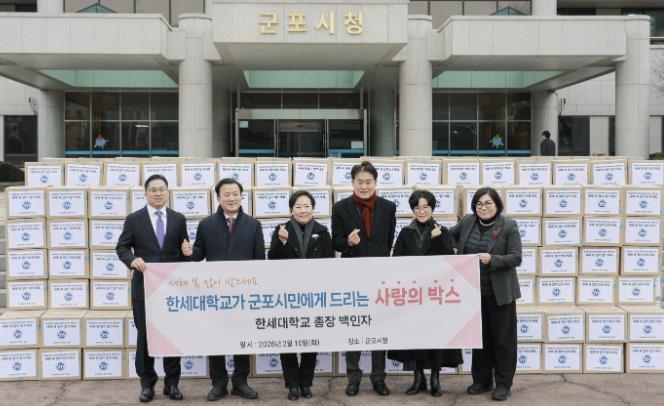 [뉴스노크=김인호 기자] 유난히 추운 겨울이지만, 군포시에는 이웃을 향한 정성이 모여 훈훈한 설 명절 분위기가 피어나고 있다. 한세대학교는 10일, 지역 내 취약계층의 넉넉한 명절을 위해 ‘사랑의 희망박스’ 350세트를 군포시에 전달하며 상생의 가치를 실천했다.