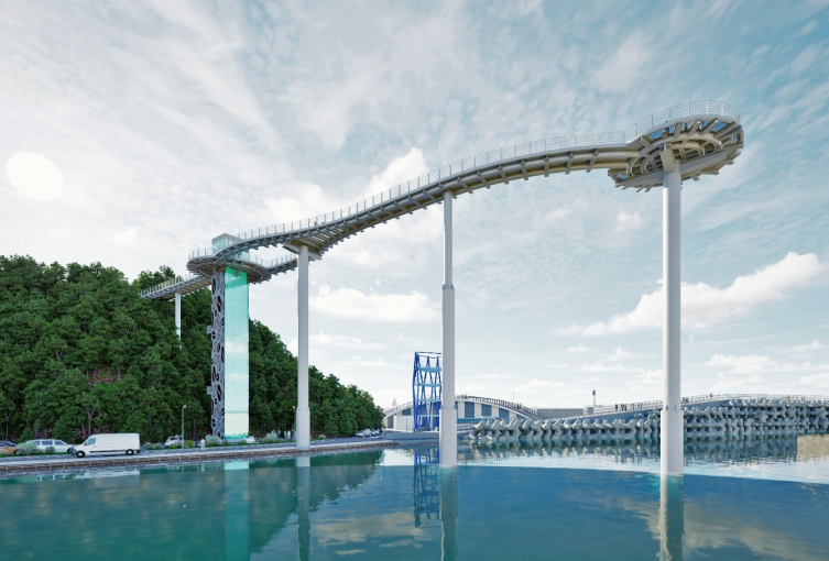 길이 108m, 높이 30m 규모의 스카이워크를 조성해 안목해변과 남항진해변, 죽도봉 등 동해안 주요 경관을 한눈에 조망할 수 있는 해안형 관광 인프라를 구축하는 것이 핵심이다.