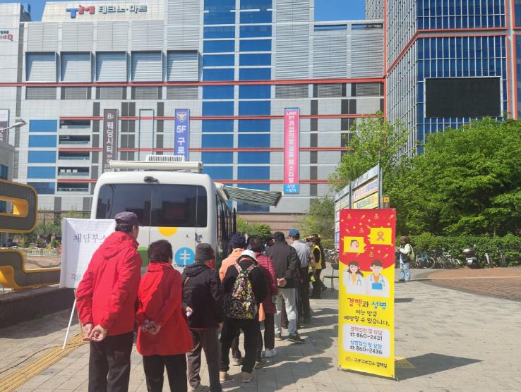 [뉴스노크=김인호 기자] 구로구가 10월 18일 오전 10시부터 오후 12시까지 신도림역 2번 출구에 위치한 무료 급식소 사랑의 집에서 이동검진 차량을 활용한 ‘찾아가는 결핵 검진’을 실시한다.