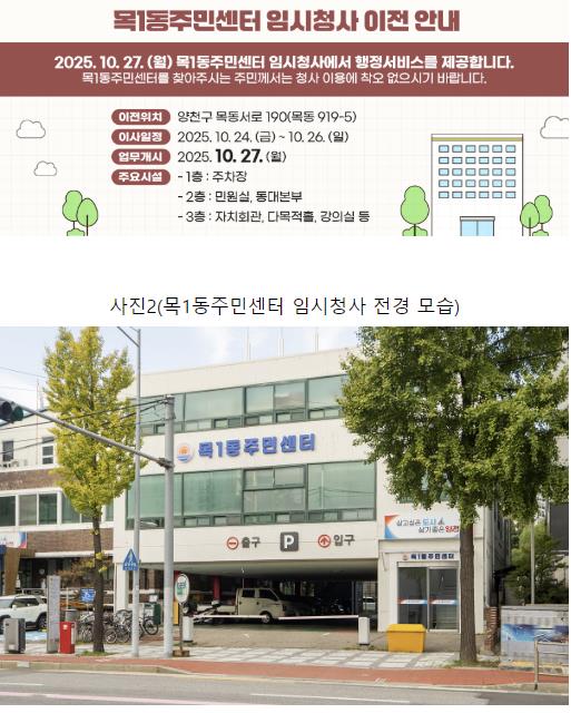 | ▲ 목1동주민센터 임시청사 이전 안내문 |