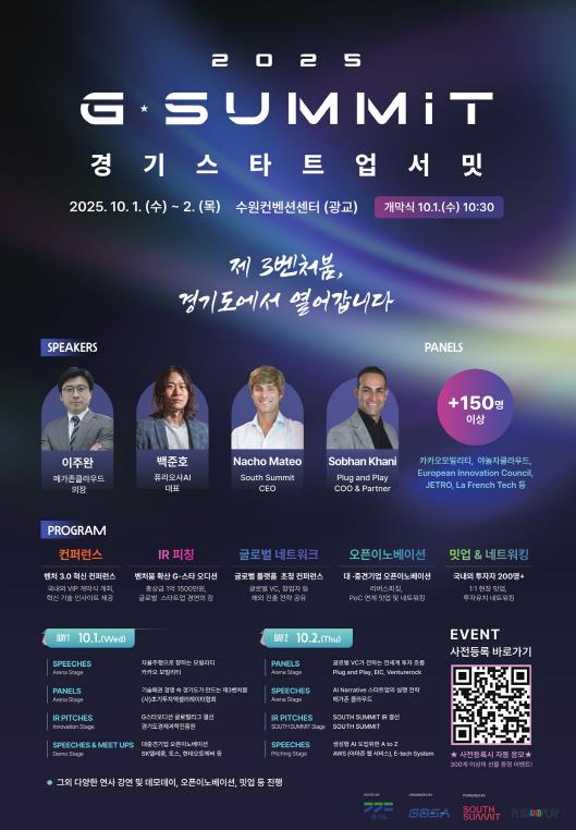[뉴스노크=김인호 기자] 국내 최고 수준의 글로벌 스타트업 투자 박람회인 ‘경기 스타트업 서밋(G-SUMMIT)’이 오는 10월 1일부터 2일까지 수원컨벤션센터에서 열린다.