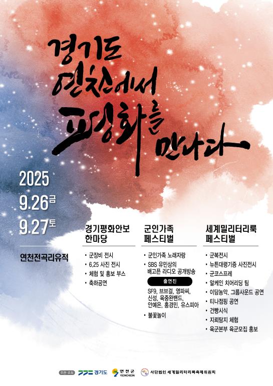 [뉴스노크=김인호 기자] 경기도는 9월 26일과 27일 이틀간 연천군 전곡리유적에서 ‘2025년 경기 평화안보 한마당’을 개최한다. ‘연천 군인가족 페스티벌’과 함께 진행될 예정인 이날 행사는 도민과 군인가족이 함께 평화와 안보의 가치를 공유하는 소통과 화합의 장으로 마련했다.