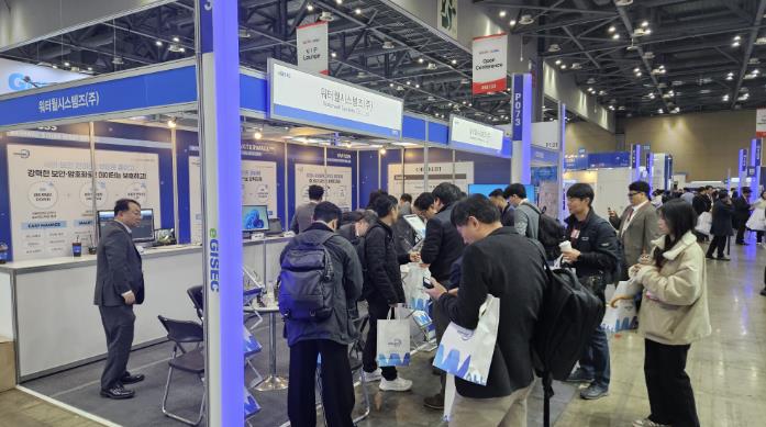 | ▲ 2025년 첨단산업전시회 참가비 지원사업에 선정된 기업이 제13회 전자정부 정보보호 솔루션 페어에서 부스를 운영하고 있다 |