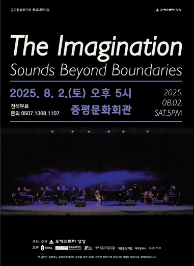 [뉴스노크=김인호 기자] 충북 증평군은 오는 8월 2일 오후 5시 증평문화회관에서 오케스트라 상상(예술감독 유용성)의 창작공연 ‘The Imagination: Sounds Beyond Boundaries’를 선보인다고 밝혔다.