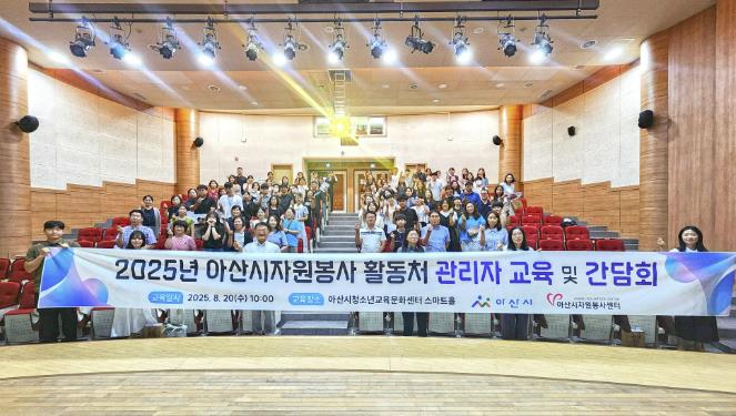 [뉴스노크=김인호 기자] 아산시자원봉사센터는 지난 20일 아산시청소년교육문화센터 스마트홀에서 활동처 관리자 110여 명이 참석한 가운데 ‘2025년 자원봉사 활동처 관리자 교육 및 간담회’를 개최했다.