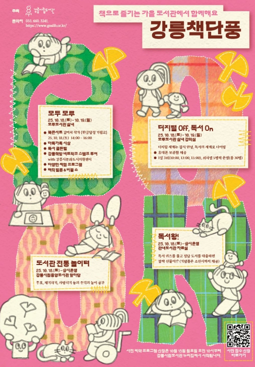 [뉴스노크=김인호 기자] 강릉시립도서관은 오는 10월 18일부터 10월 19일까지 모루도서관을 중심으로 시민과 함께 참여하는 2025년 ‘강릉 책단풍’을 운영한다.
