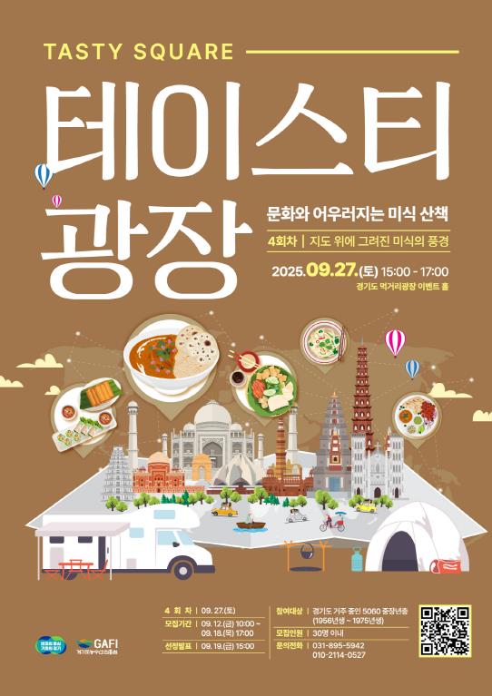 이문무 경기도 농업정책과장은 “경기도 먹거리광장은 단순한 먹거리 체험을 넘어, 음식을 매개로 세계를 마주하고 여행의 감동을 나누는 장소가 되기를 바란다”며 “특히 이번 테이블이 중장년 세대에게는 자신이 걸어온 삶의 여정을 되돌아보고, 그 안에서 작은 위로를 얻는 시간이 되기를 기대한다”고 말했다.