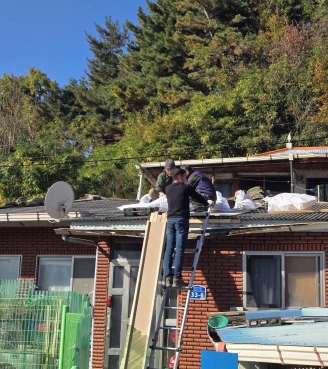 [뉴스노크=김인호 기자] 새마을운동보령시청년봉사대는 지난 12일부터 14일까지 3일간 대천2동에 거주하는 드림스타트 대상 취약가구를 방문해 누수 슬레이트 지붕 전면 교체 봉사활동을 진행했다고 밝혔다.